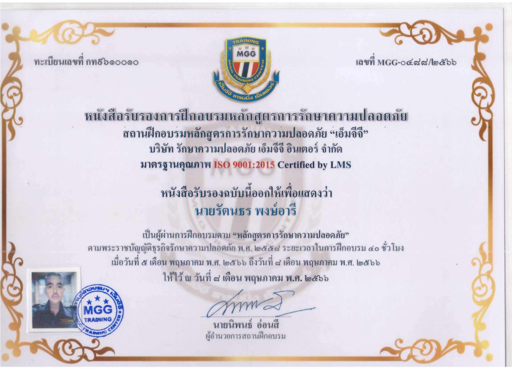 ตัวอย่างใบอบรมของพนักงานรปภ(ด้านล่าง)